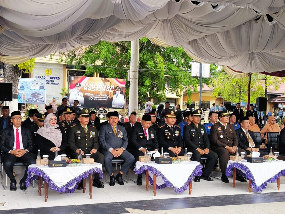 BARABAI, Kaltimku.id — Bupati Hulu Sungai Tengah (HST) Samsul Rizal memimpin Uparaca Hari Pahlawan 10 November 2025. Ia membacakan amanat Menteri Sosial, Saifullah Yusuf yang menyebut perjuangan pahlawan harus selalu dikenang.
