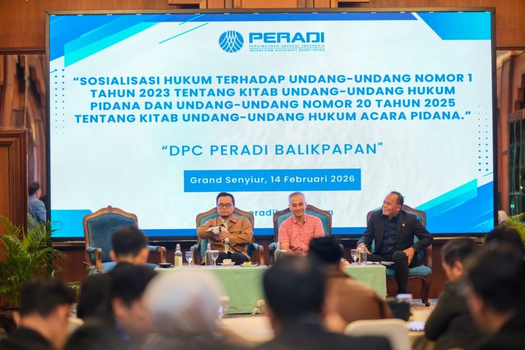 BALIKPAPAN, Kaltimku.id –- Dewan Pimpinan Cabang (DPC) Perhimpunan Advokat Indonesia (PERADI) Balikpapan sukses menyelenggarakan dua agenda besar sekaligus, yakin Rapat Kerja Cabang (Rakercab) dan Sosialisasi Hukum berskala nasional. Kegiatan yang berlangsung khidmat ini memfokuskan pembahasan pada transisi besar regulasi pidana di Indonesia, Sabtu (14/2/2026) di Gran Senyiur Hotel, Jl ARS Mohammad, Balikpapan Kota.